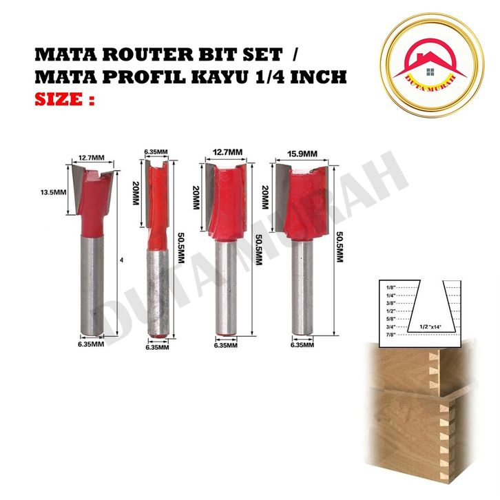 Mata Profil Set 12pcs Trimmer Router Bits Set 1/4Inch Mata Router Trimmer Kayu
