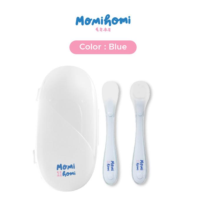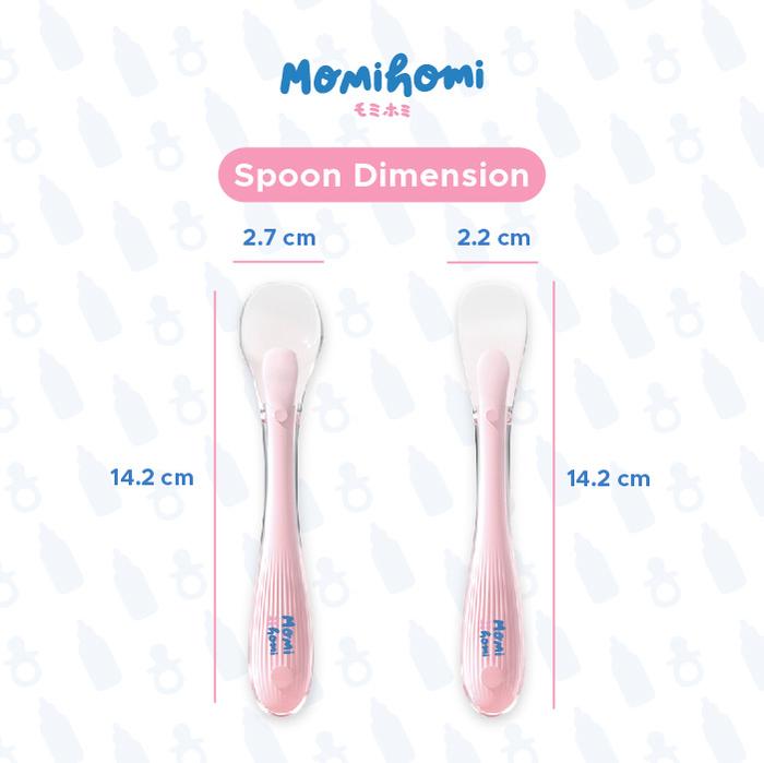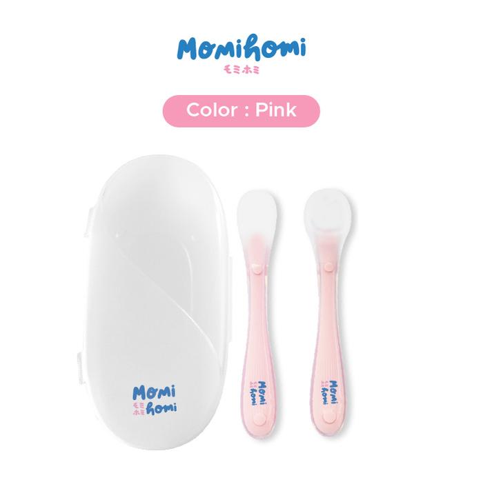 MOMI HOMI SENDOK MAKAN BAYI SILIKON ISI 2 PCS SENDOK MPASI PERALATAN MAKAN BAYI SILICONE BPA FREE LENTUR TAHAN PANAS BIRU - PINK