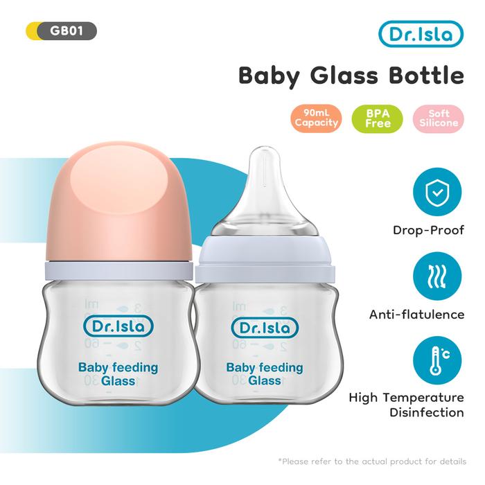 DR.ISLA GB01 DOT BAYI BOTOL SUSU KACA 90ML 160ML BOTOL MINUM BAYI BPA FREE BOTOL BAYI NEWBORN MERAH - GREEN 90ML