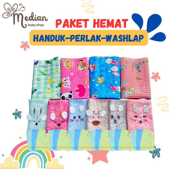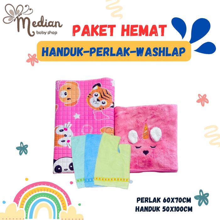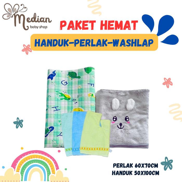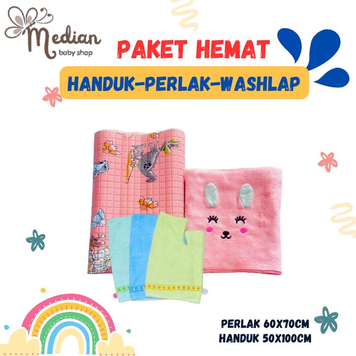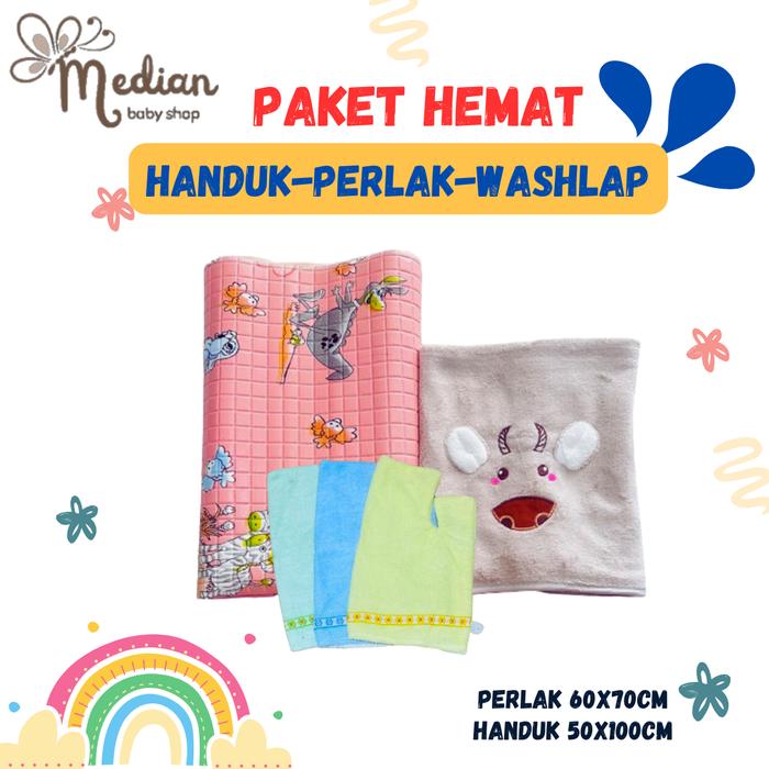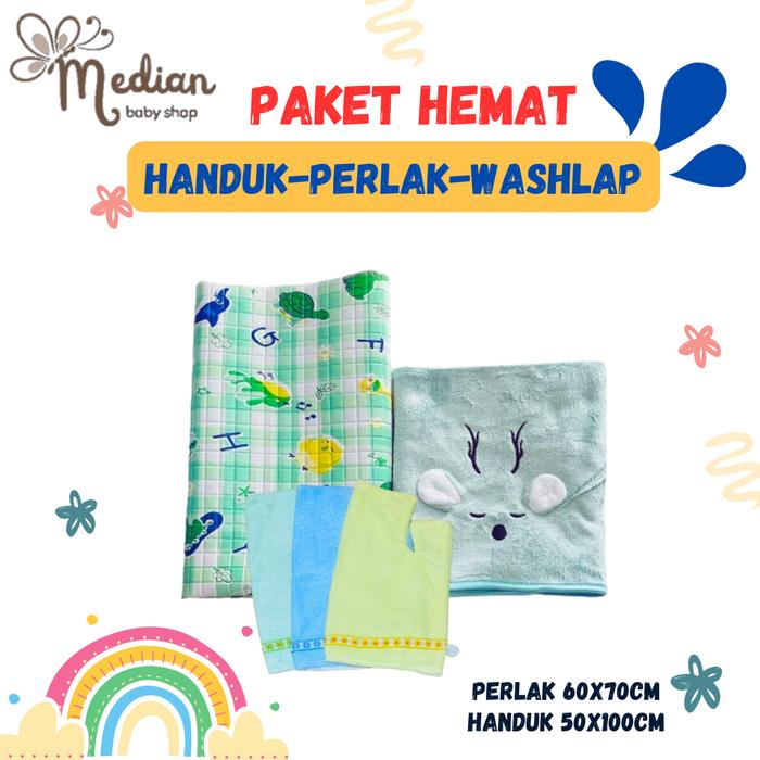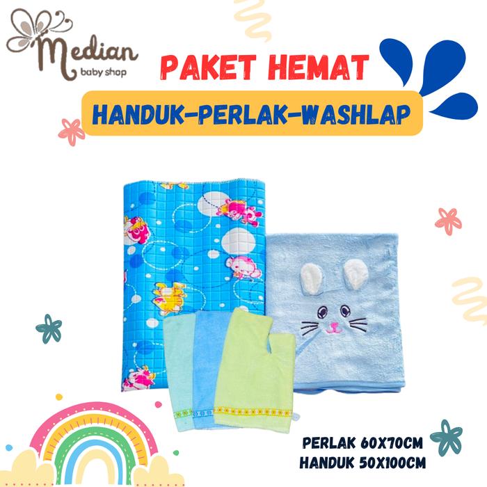 PAKET HEMAT HANDUK, PERLAK PLUS WASHLAP TANGAN BAYI BARU LAHIR CEWEK COWOK - BIRU