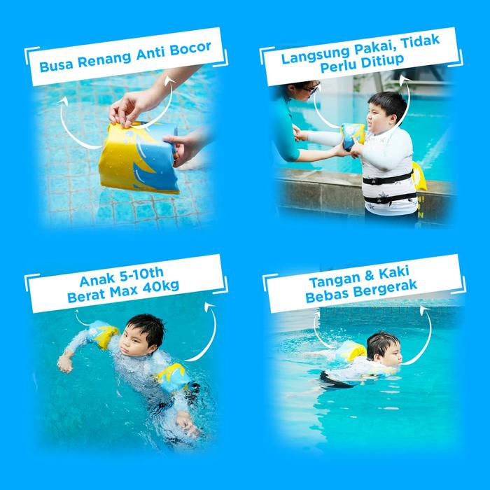 ARM FLOATS | PELAMPUNG LENGAN ANAK | BUSA RENANG |ANTI BOCOR KIDDIE SPLASH ORIGINAL TIDAK PERLU TIUP OUTDOOR - BLUE SHARK