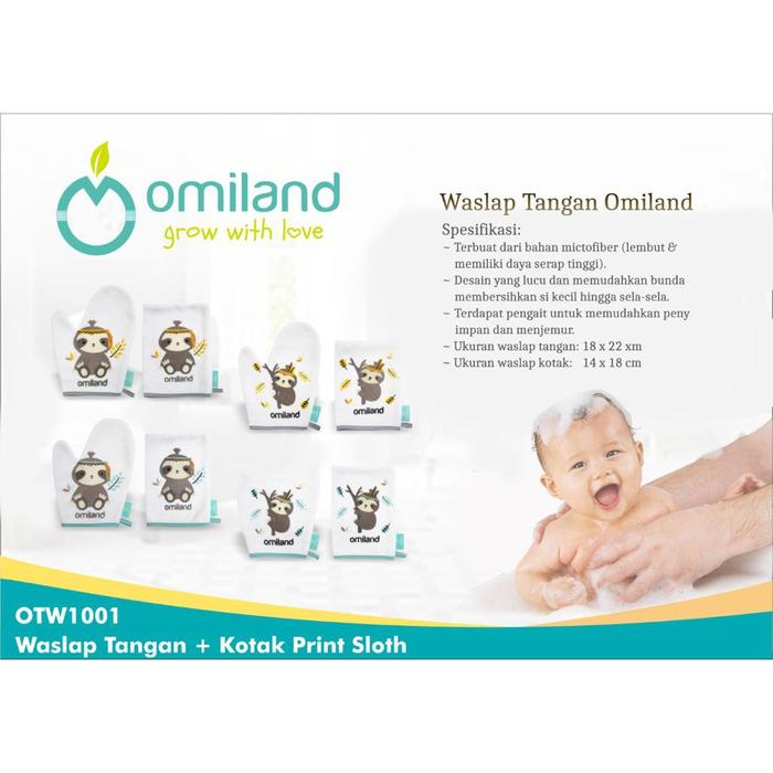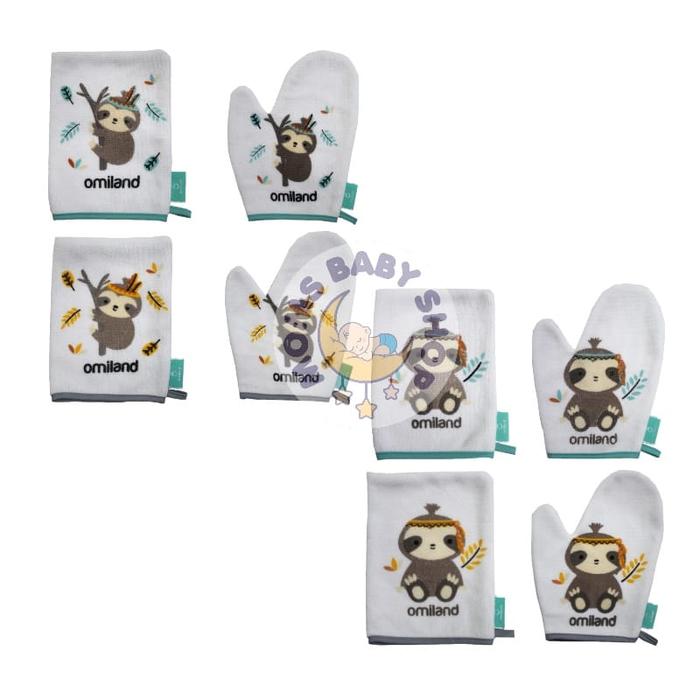 MOMS_ OMILAND WASHLAP TANGAN MOTIF SLOTH /ALPACA / FOX / OTTER | WASLAP HANDUK LAP MANDI BAYI - ALP CREAM 1 SET