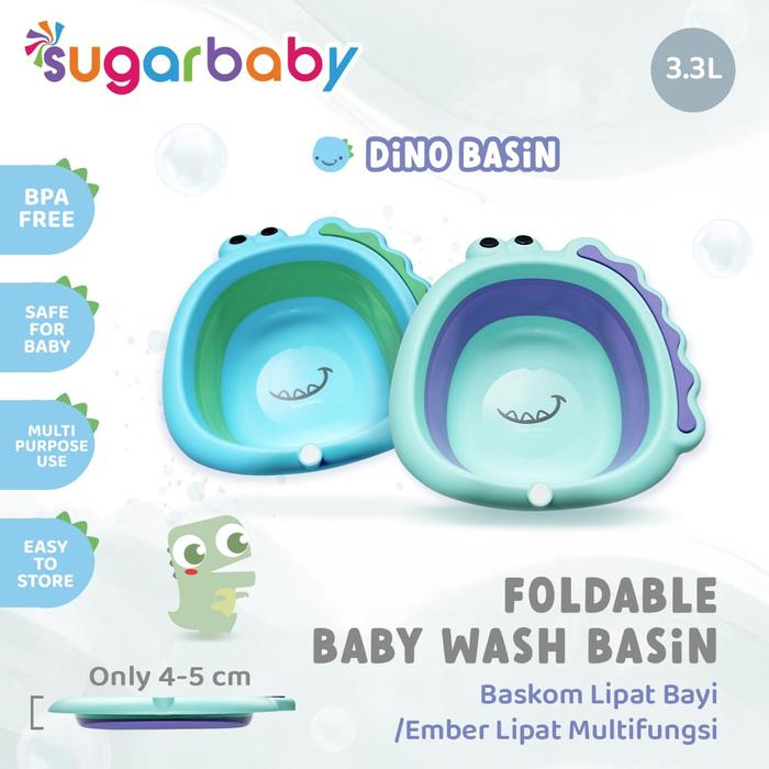 MOMS_SUGARBABY FOLDABLE BABY WASH BASIN/BASKOM LIPAT BAYI/EMBER LIPAT MULTIFUNGSI BAYI PERLENGKAPAN - BASIN DINO BLUE