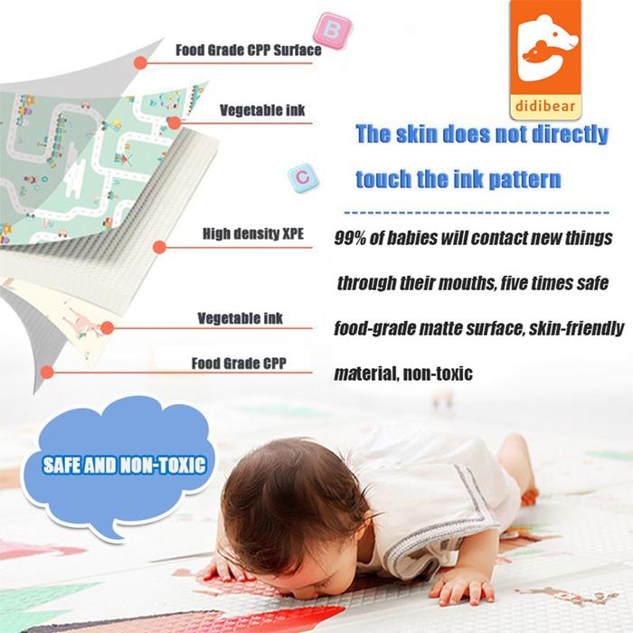 SNI DIDIBEAR PREMIUM KARPET LIPAT PLAYMAT ANAK BAHAN XPE ASLI UK 180X200 MOTIF BOLAK BALIK FREE TAS - A (FREE TAS), 85 X 180 X 9MM