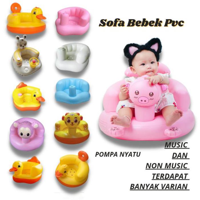 KURSI DUDUK BEBEK SOFA BAYI BAHAN PVC MUSIC KARAKTER BEBEK WARNA KUNING OREN DUDUKAN PUTIH - SOFA BBK BULAT MUSIC