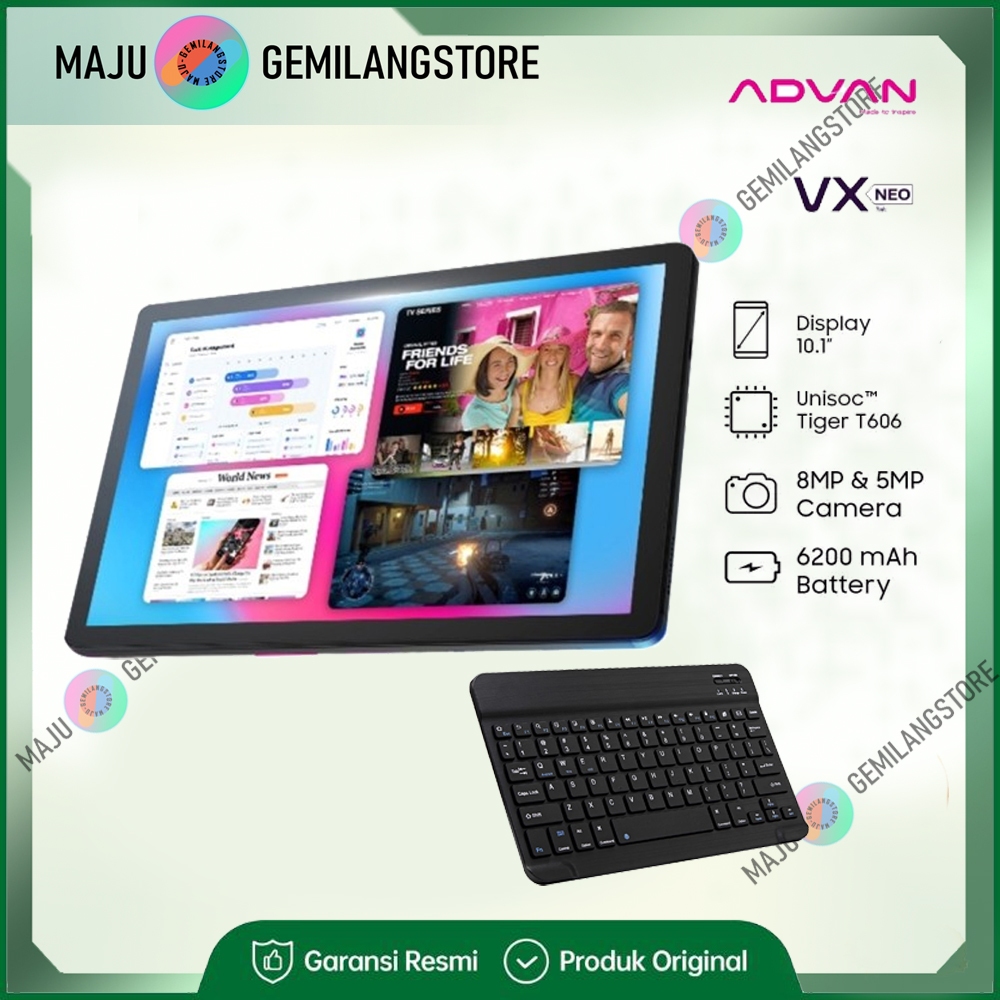 Advan Tab VX Neo 4/128 ( 4GB/ 128GB ) 10.1" IPS Screen , Tablet 10 inch, Android 14, Baterai 6200mAh Dual Sim Card 4G & Varian VX lite Garansi resmi