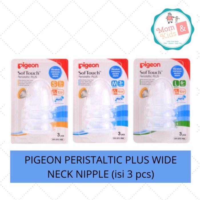 DOT PIGEON SOFT TOUCH PERISTALTIC PLUS WIDE NECK NIPPLE ISI 3 BLISTER S M L LL LLL | DOT BOTOL BAYI - WIDE NECK S