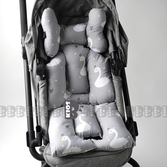 4IN1 UNIVERSAL ALAS STROLLER BAYI CAR SEAT BOUNCER 5 LUBANG / SEAT PADDING BABY / ALAS KURSI MAKAN BAYI BAYI - GRAY SWAN