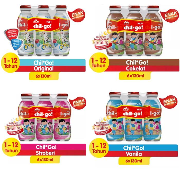 CHIL GO SUSU UHT STROBERI - 6X130ML (PACK) UNTUK SI KECIL 1-12 TAHUN - MILK - VANILA