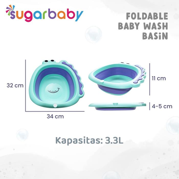 SUGAR BABY FOLDABLE BABY WASH BASIN BASKOM EMBER LIPAT MANDI BAYI MULTIFUNGSI SUGARBABY ORIGINAL - DINO, BLUE