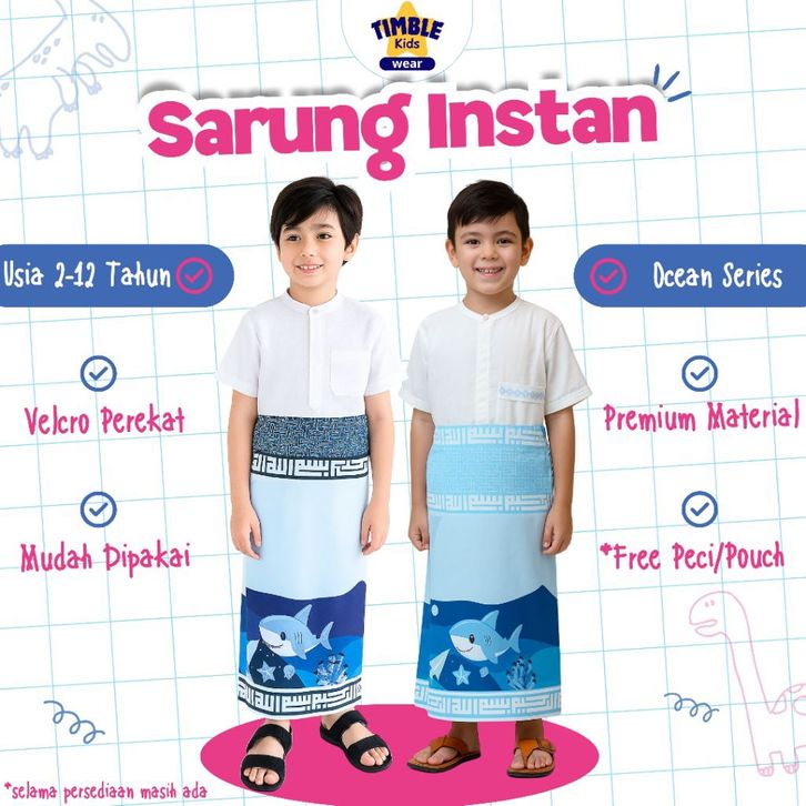 Timble Kids Sarung Anak Instan 2-12 Tahun Vehicle dan Ocean Series Sarung Instan9ratis Peci