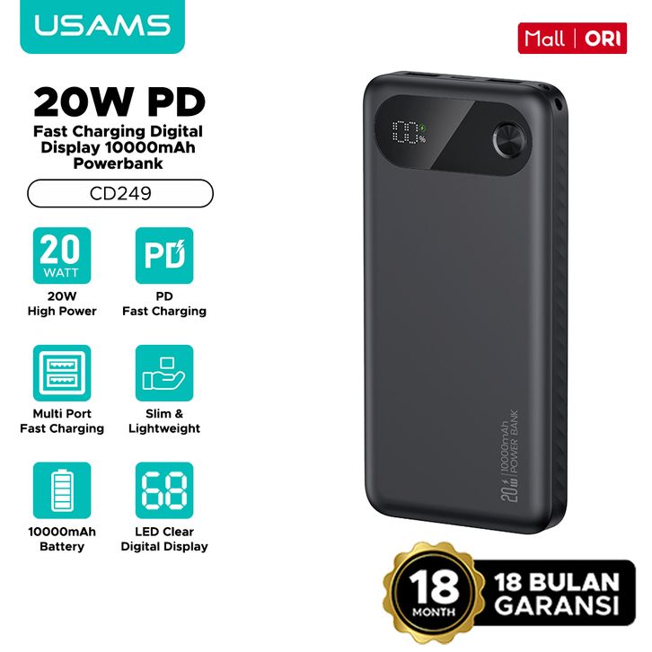 USAMS Powerbank 10000mAh / 20000mAh PD 20W Fast Charging Digital Display CD249 CD251