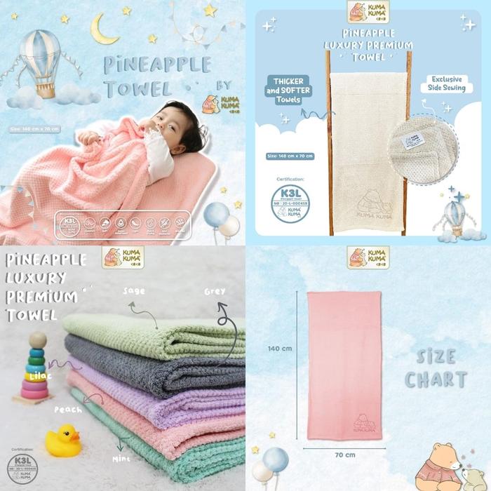 MOMS_ KUMA KUMA HANDUK BAYI PURE COTTON / PINEAPPLE / BAMBOO / MICROFIBER TOWEL - PINEAPPLE SKY BLUE