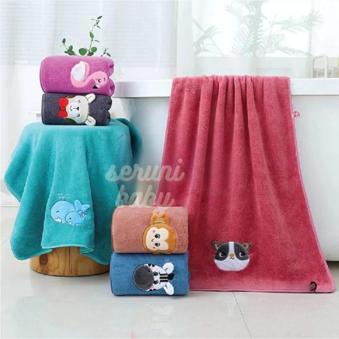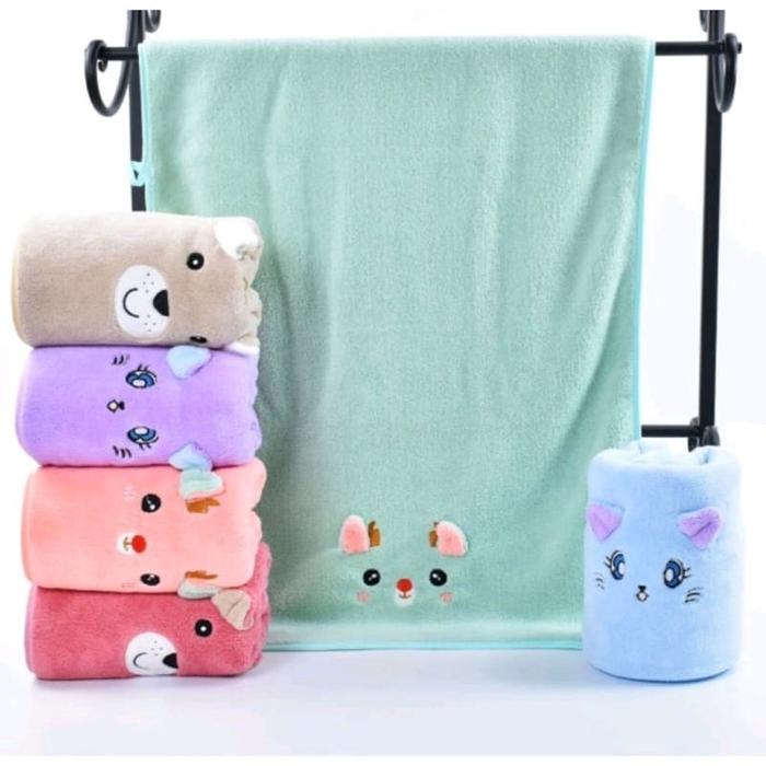 HANDUK BAYI LEMBUT MICROFIBER / HANDUK ANAK PREMIUM BERKARAKTER 50X100CM - BIRU