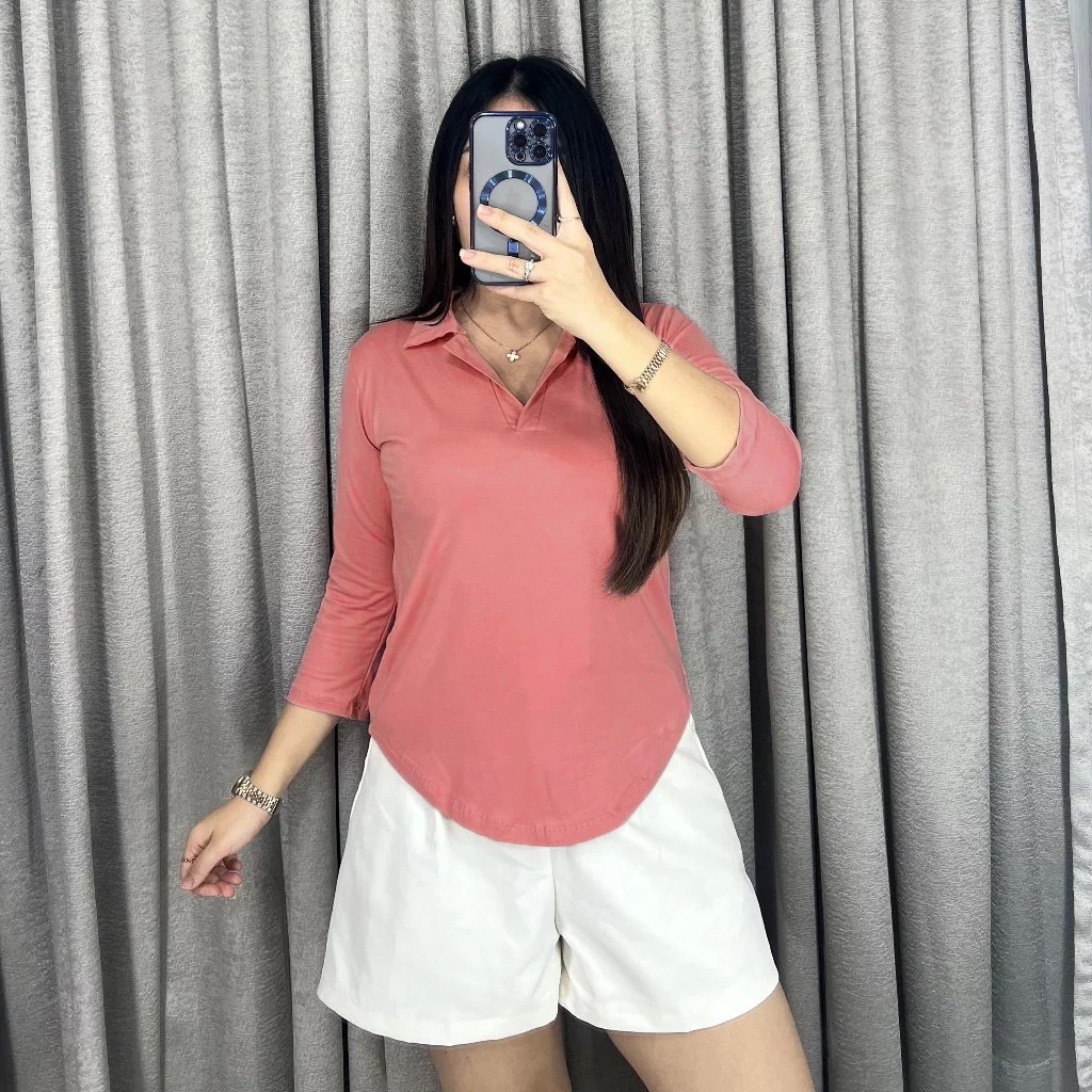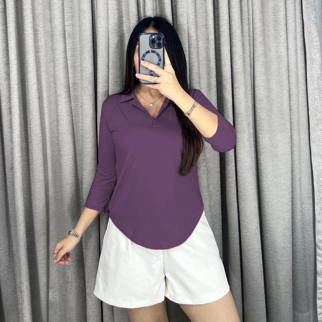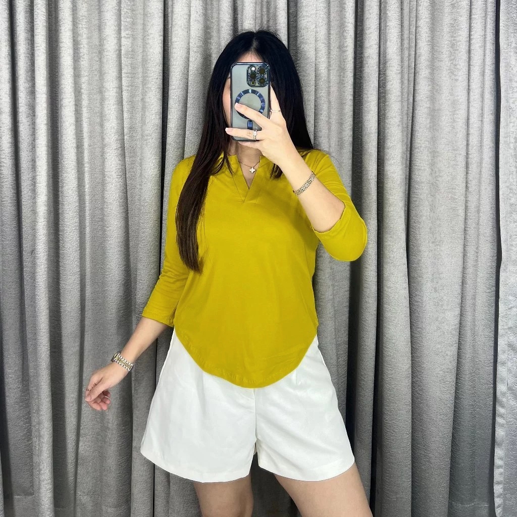 PROMO 7.7 ATASAN KERAH V NECK LENGAN 7/8 OVERSIZE KAOS WANITA LENGAN PANJANG 8006