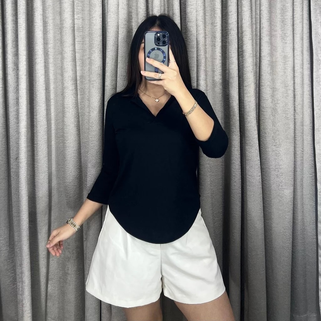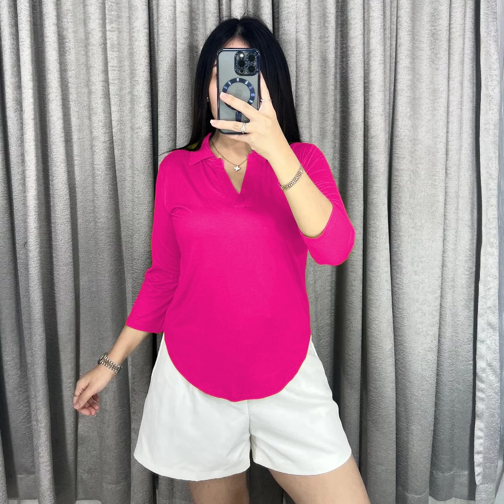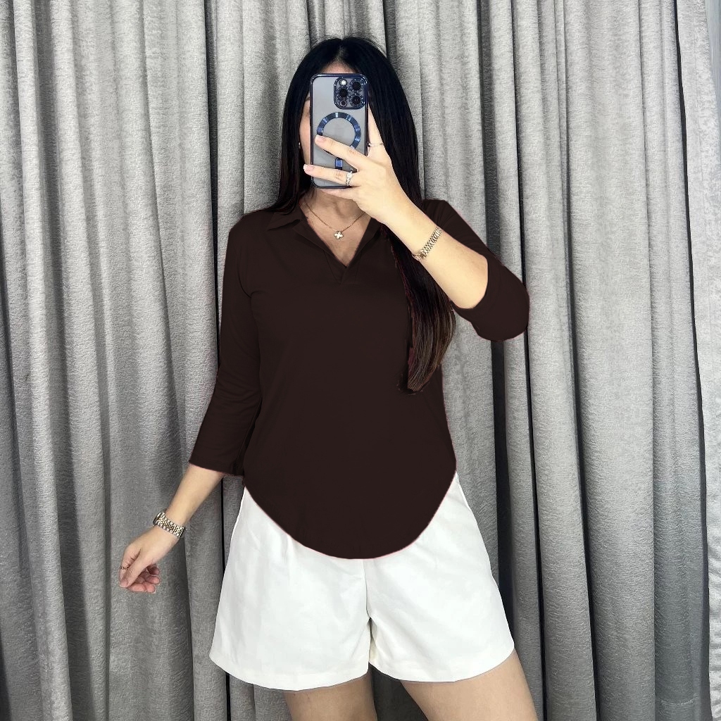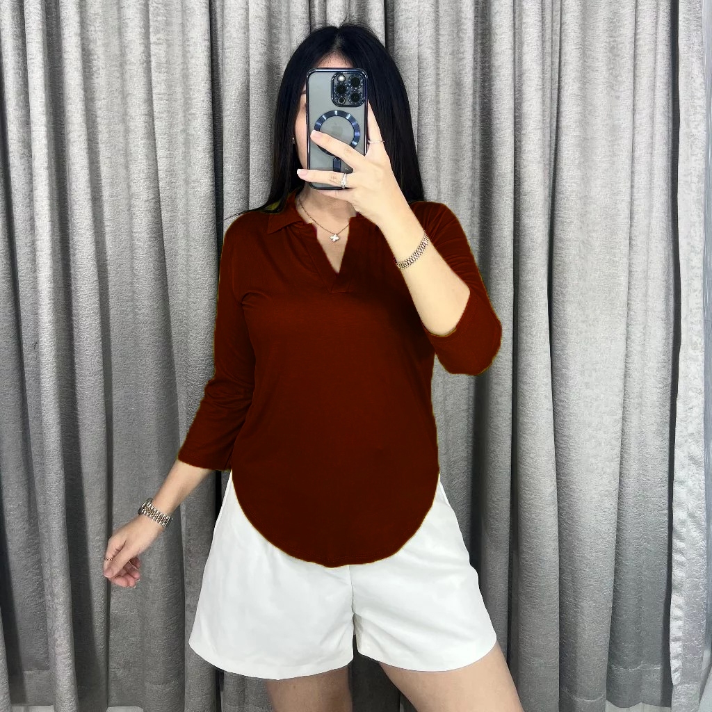 PROMO 7.7 ATASAN KERAH V NECK LENGAN 7/8 OVERSIZE KAOS WANITA LENGAN PANJANG 8006
