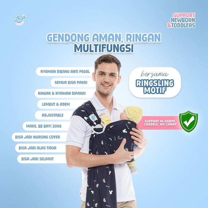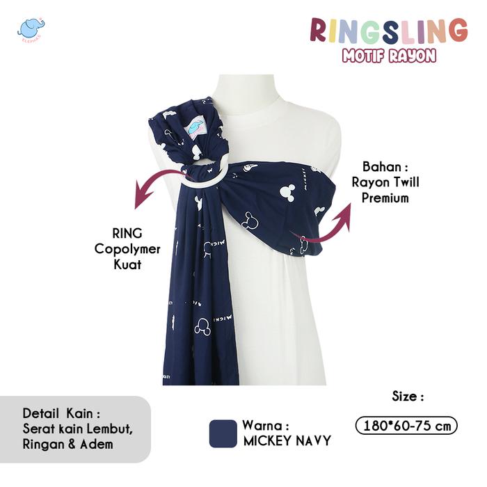 ELEPHAS RING SLING MOTIF SERIES - GENDONGAN BAYI NEWBORN DAN TODDLER GENDONGAN PREMIUM BEST SELLER BERGARANSI BISA GENDONG M SHAPE HIPSEAT JARIK - MICKEY NAVY