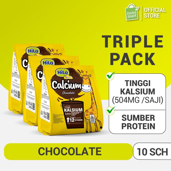 TRIPLE PACK: HILO SCHOOL CHOCOLATE 10 SACHET - SUSU TINGGI KALSIUM