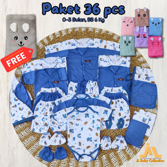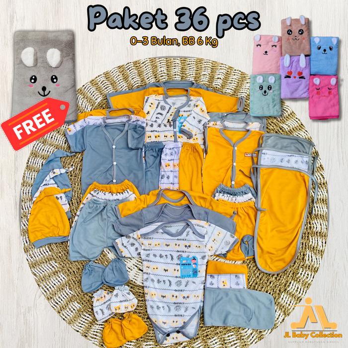 EXCLUSIVE (FREE HANDUK) 36PCS PAKET LAHIRAN LENGKAP BAJU BAYI CELANA BAYI BARU LAHIR, SARTAKI, JUMPER, POPOK TALI, BABY NEWBORN GIFT SET -JURAGAN LEGOK SARUNG PARSEL - ABU