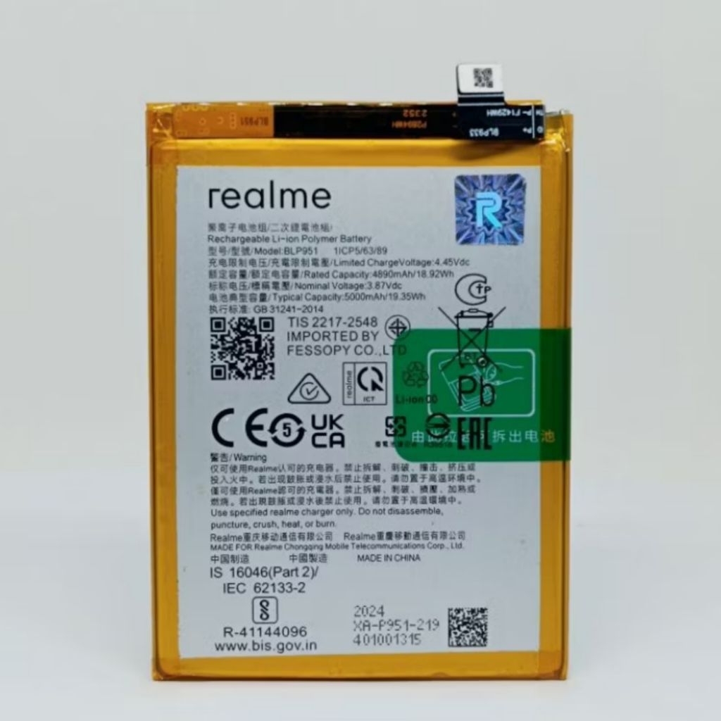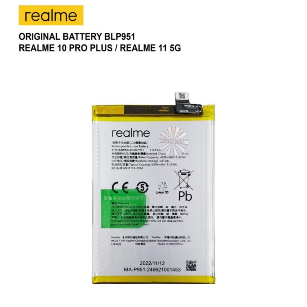 BATERAI BATRE BATRAI BATTERY REALME 11 5G / REALME 10 PRO PLUS 5G / REALME 10 PRO+ 5G BLP951 ORIGINAL 100 PERSEN