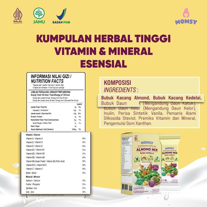 MOMSY ALMOND MIX, MINUMAN ALMOND RASA VANILA 6 SACHET BPOM & HALAL