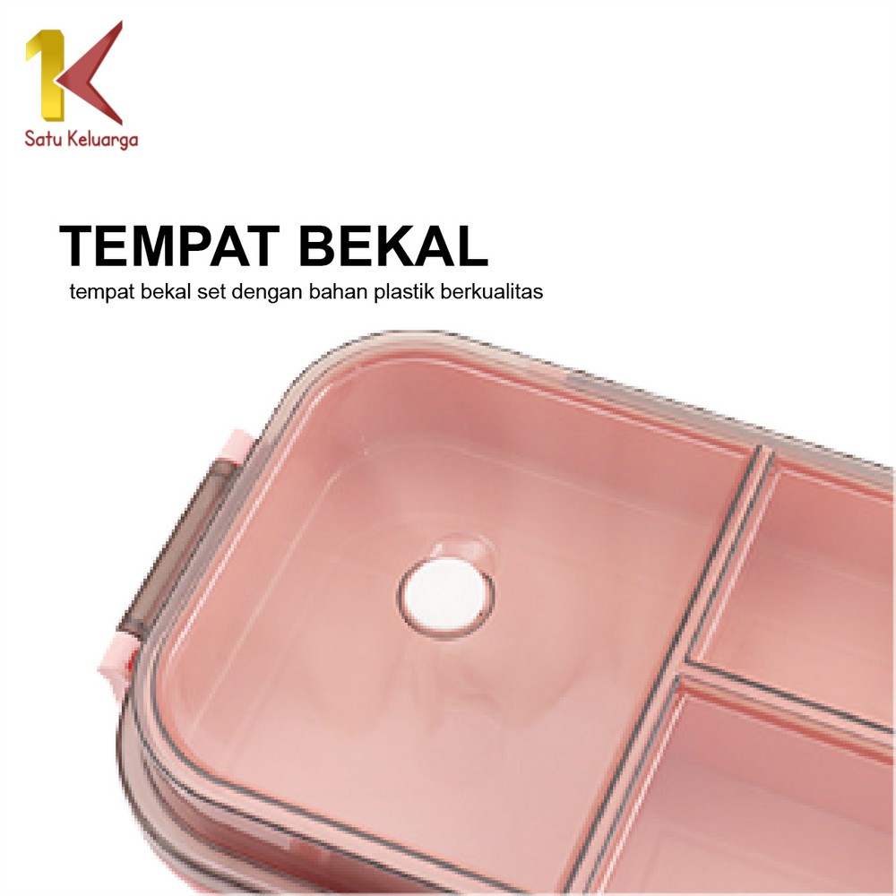 Satu Keluarga Tempat Makan Set 2 Tingkat 3 Sekat Anti Tumpah C697 Kotak Bento Tingkat Set BPA FREE / Lunch Box Susun Fre