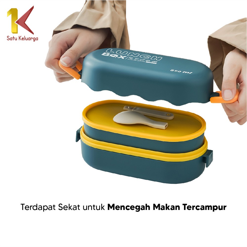 Satu Keluarga Lunch Box Bento Set 850ML C780 Kotak Makan 2 Tingkat Kotak Bekal Free Sendok Anti Tumpah Portable