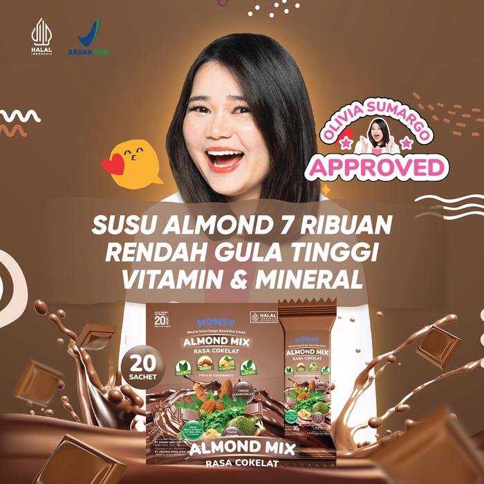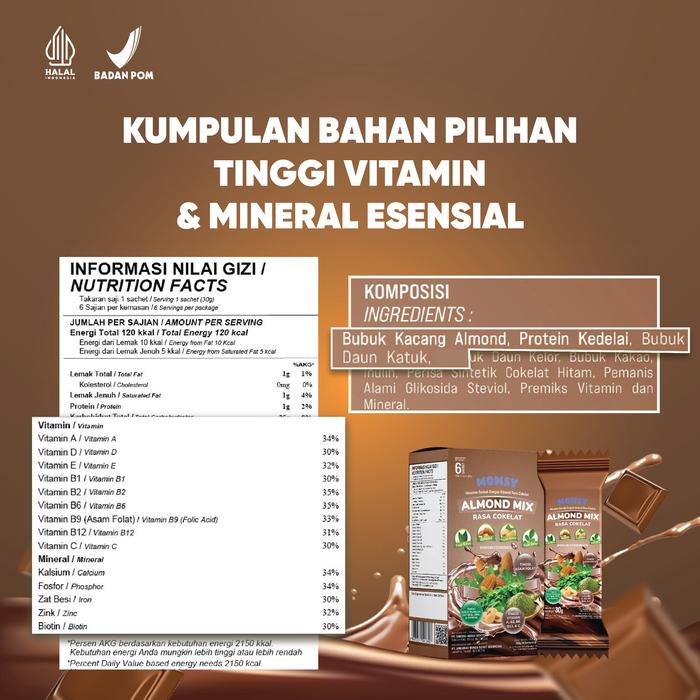 MOMSY ALMOND MIX [FREE ONGKIR], MINUMAN ALMOND RASA COKELAT 20 SACHET BPOM & HALAL
