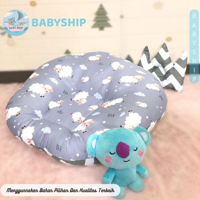 SOFA BAYI 2IN1 MULTIFUNGSI FREE BANTAL PEYANG DAN PLASTIK MIKA [ MERK BABYSHIP ] - ANGSA PEACH
