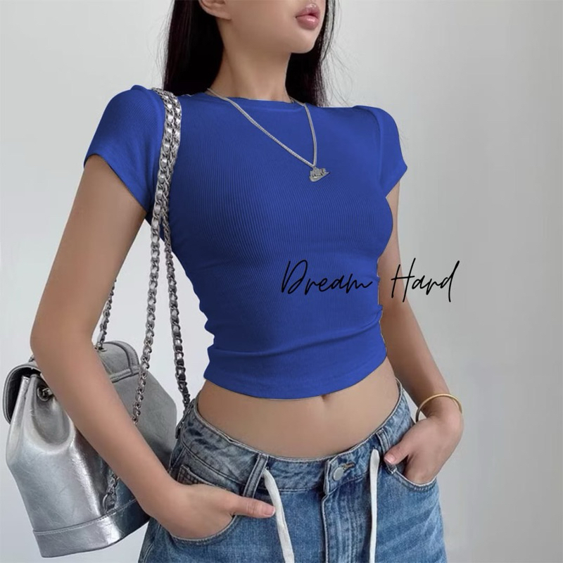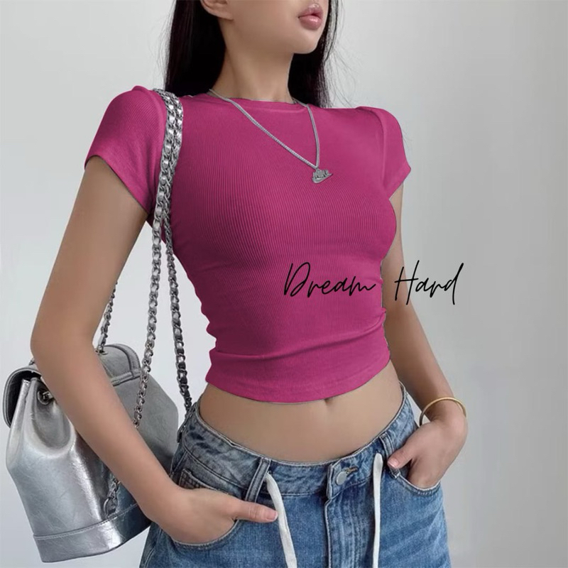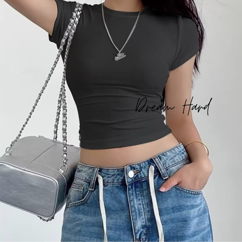 DREAM 07 | KAOS CROP WANITA - ATASAN WANITA CROP BAHAN RIB KNIT - ATASAN CROP WANITA KOREA - BAJU WANITA CROP - ATASAN BASIC POLOS