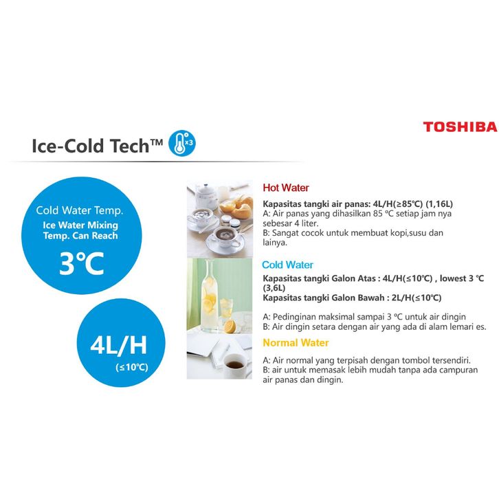 Toshiba Dispenser Galon Bawah RWF-W1615BN(K) Bottom Loading Compressor