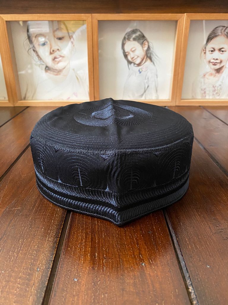 Peci madina bugis hitam motif pohon kurma harga terjangkau kualtias bagus aneka warna dan motif