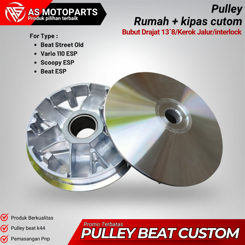 AS MOTOPART CUSTOM BUBUT PULLEY BEAT K44 RUMAH ROLLER BUBUT CUSTOM BEAT FI ESP SCOOPY FI ESP GENIO VARIO 110 FI
