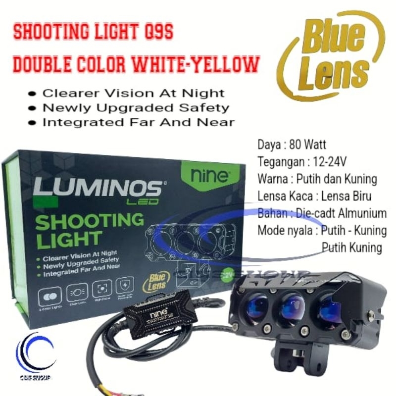 NEW SHOOTING LIGHT Q9S Q9 PRO Q10 BLUE LENS NINE 80W 2 WARNA WHITE YELLOW LAMPU SOROT 3 DAN 4 MATA LED MOTOR MOBIL