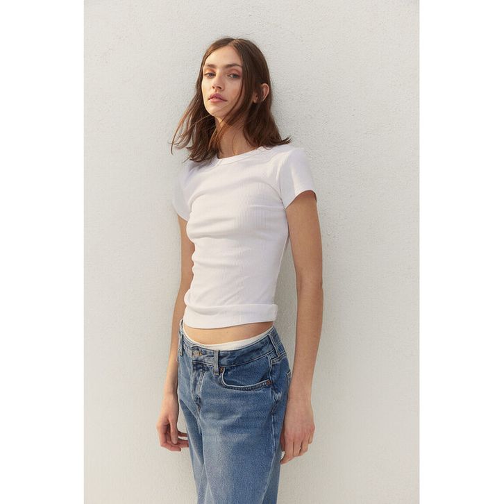 H&M Wanita Ribbed T-Shirt - Nyaman Dan Stylish