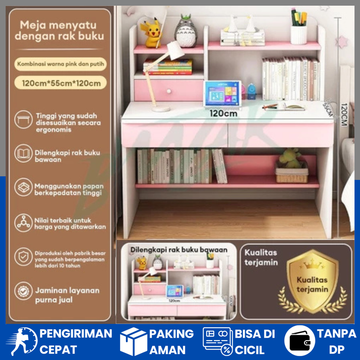 [Mall] Meja Belajar Anak Berkualitas Modern Minimalis Laki Perempuan Karakter Lipat Kerja Kantor 1 Set Kursi