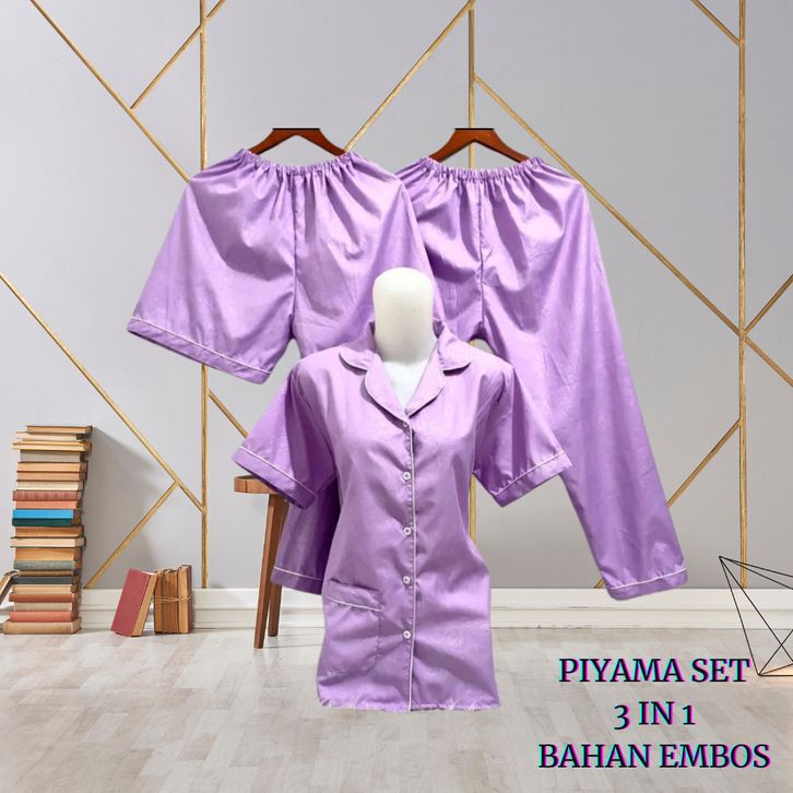 BAJU TIDUR PIYAMA 3IN1 JUMBO 3XL HEMBOS LD120 SETELAN WANITA TIDUR BAJU TIDUR CEWEK ADEM TERLARIS