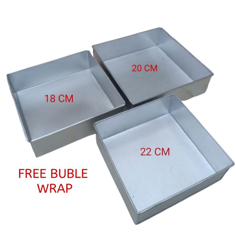 loyang kue bentuk kotak isi 3 pcs beda ukuran 22x22x7cm 20x20x7cm 18x18x7cmtebuat dari bahan galvalum 0,2 Anti karat bia
