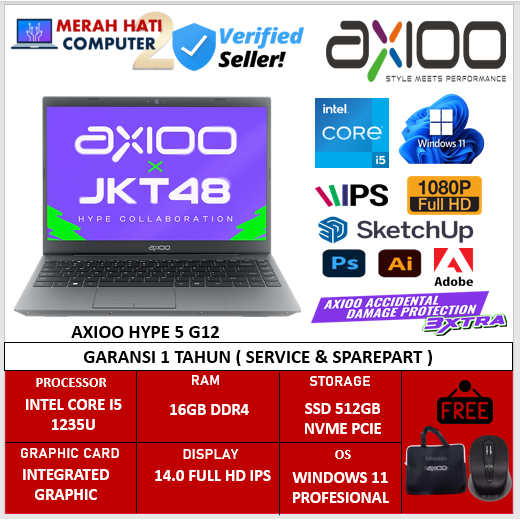 Promo Laptop Murah Axioo Mybook Hype 5 Gen12 Intel I5 1235U 16GB 512GB 14.0 FHD IRIS XE IPS Win11