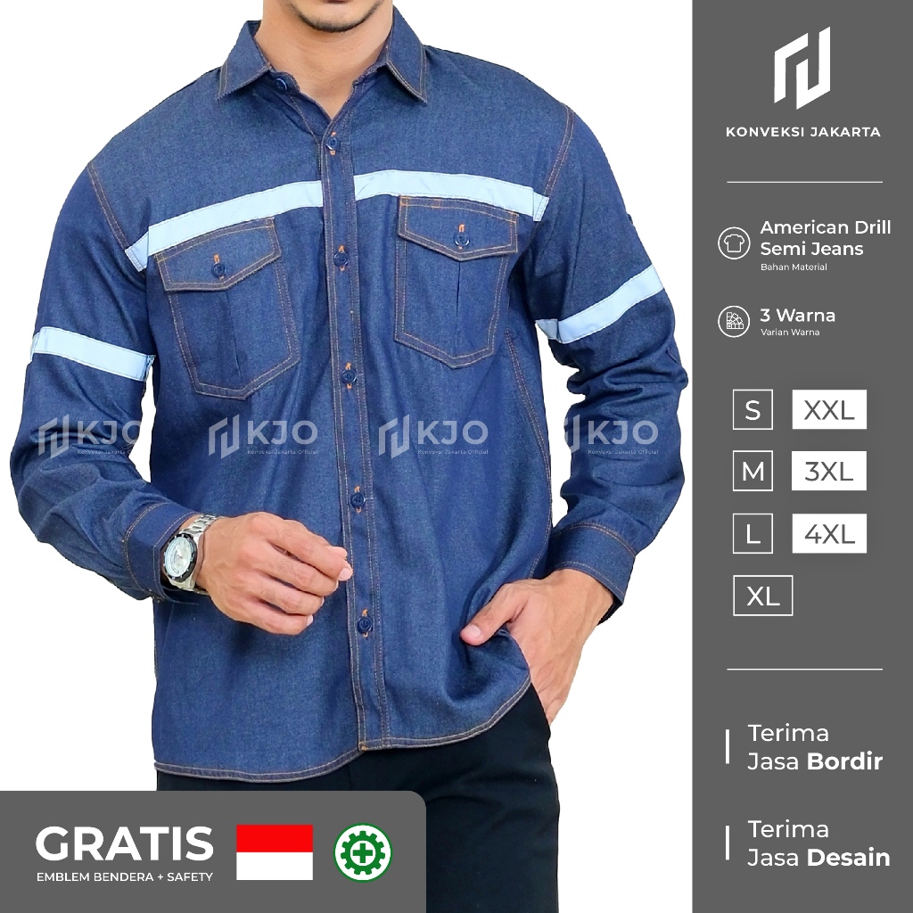 Baju Wearpack Kemeja Safety Jeans K3 Proyek Tambang Lengan Panjang - Pakaian Seragam Werpak Kerja Atasan Scotlite Lapang