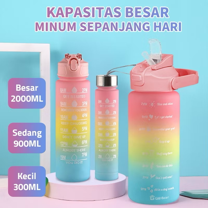 GM Bear Set Botol Minum Olahraga Warna Gradasi (2000 mL + 900 mL + 300 mL) P0552 - 3in1 Sports Water Bottles Gradient C