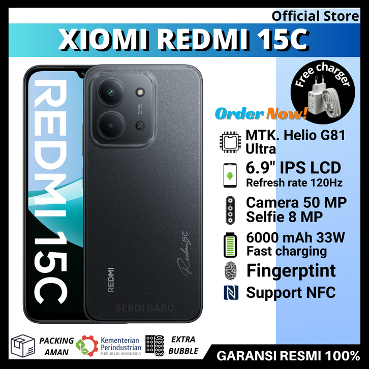 XIAOMI REDMI 15C 8/256 GB - REDMI 15C 6/128 GB GARANSI RESMI - KAMERA UTAMA 50 MP