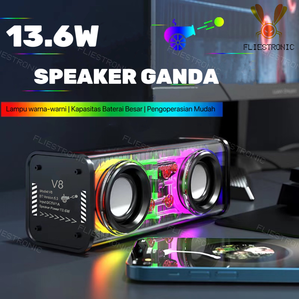 [Mall] FLIESTRONIC BLUETOOTH SPEAKER V8 FULL STEREO BASS FULL RGB LED SUBWOOFER SPEAKER DOUBLE SPEKER STEREO