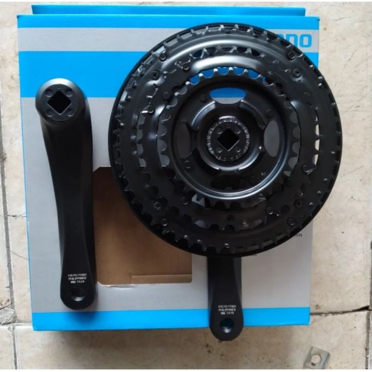 gir crankset crank set shimano original FC TY501 TY 501 sepeda mtb 3 susun speed 48T 38T 28T triple