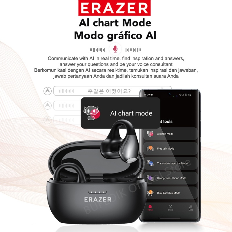 [Mall] LENOVO ERAZER XF39 TRANSLATION EARBUDS OWS WIRELESS BLUETOOTH 6.0 EAR CLIPS TERJEMAHAN AI 134 BAHASA TWS GAMING SPORTS HEADSET