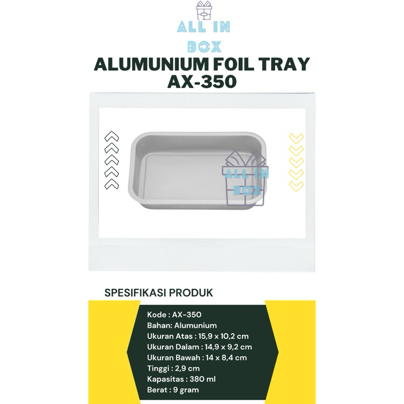 ALUMINIUM FOIL TRAY AX-350 / WADAH ALUMUNIUM FOIL Persegi AX-350 380ml BESTFRESH