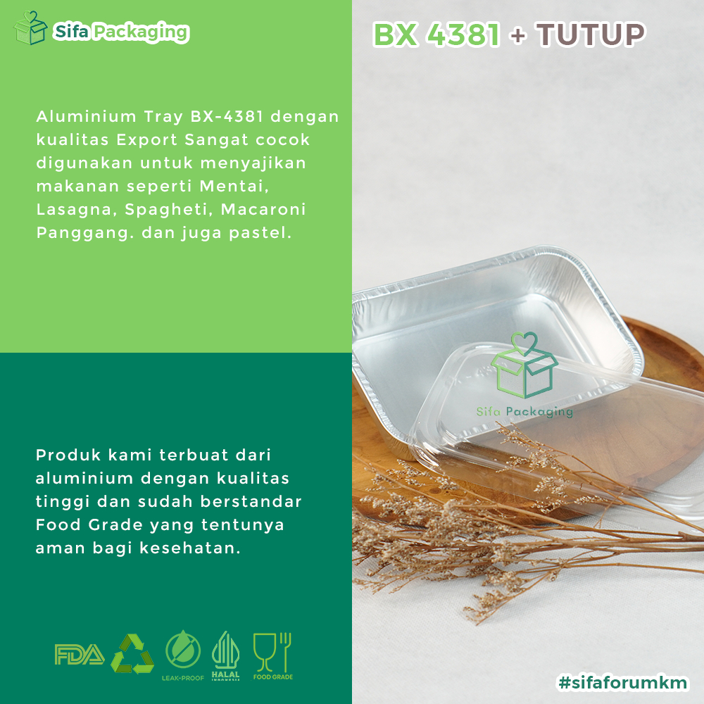 Alumunium Foil Tray Cup BX 4381 + Tutup Mika Macaroni Schotel Lasagna Mentai Rice Dimsum Mentai Pastel Tutup