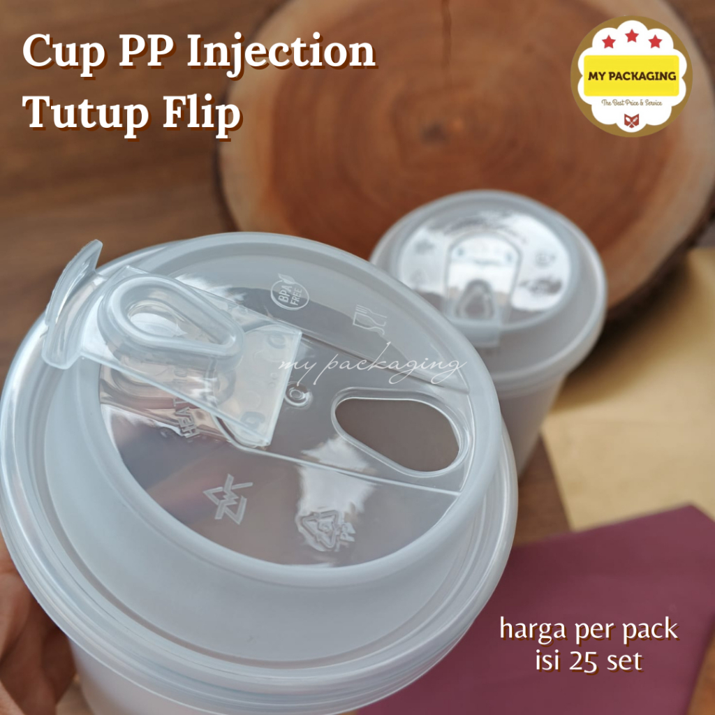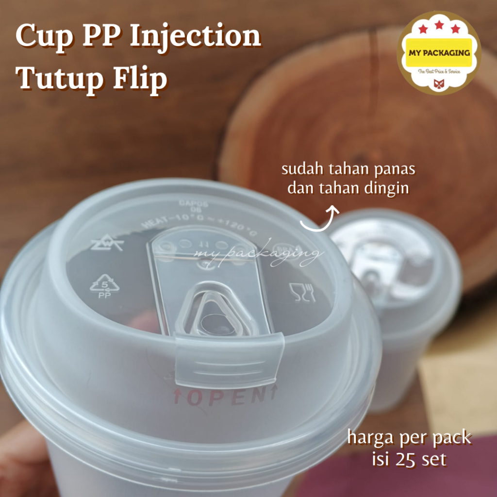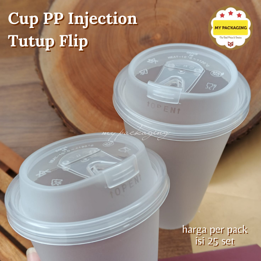 PP Cup Injection Tutup FLIP 25 set ( gelas + tutup )