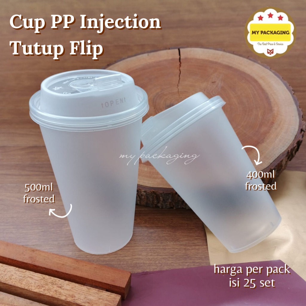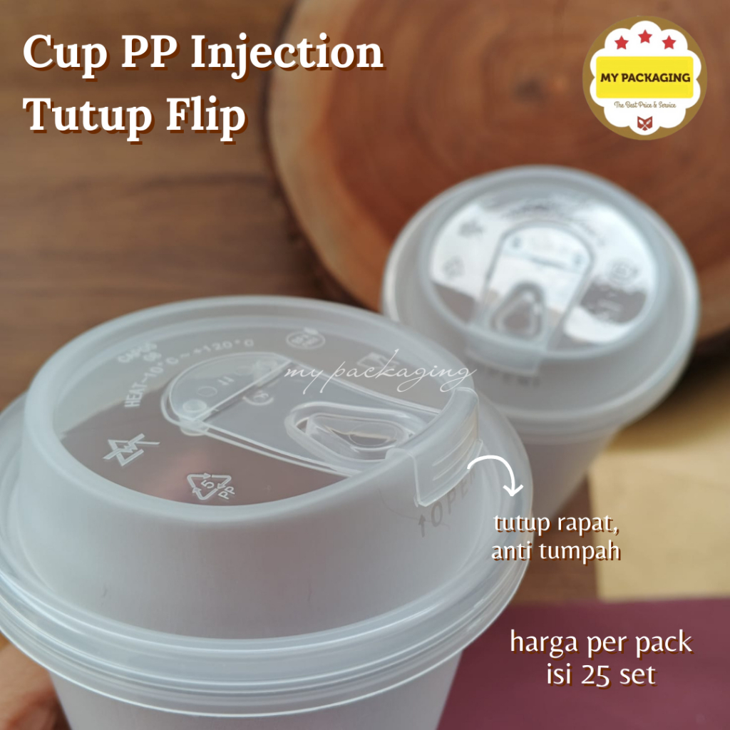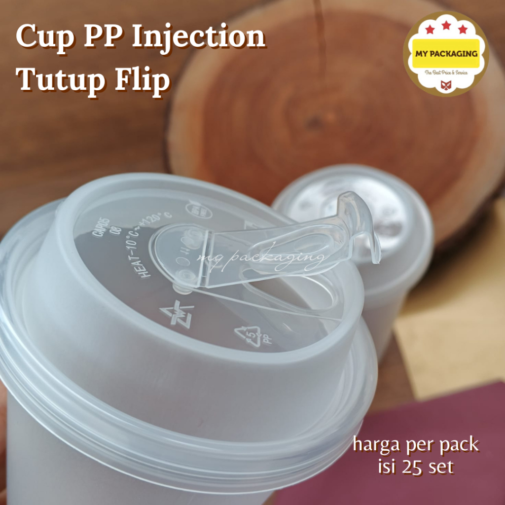 PP Cup Injection Tutup FLIP 25 set ( gelas + tutup )