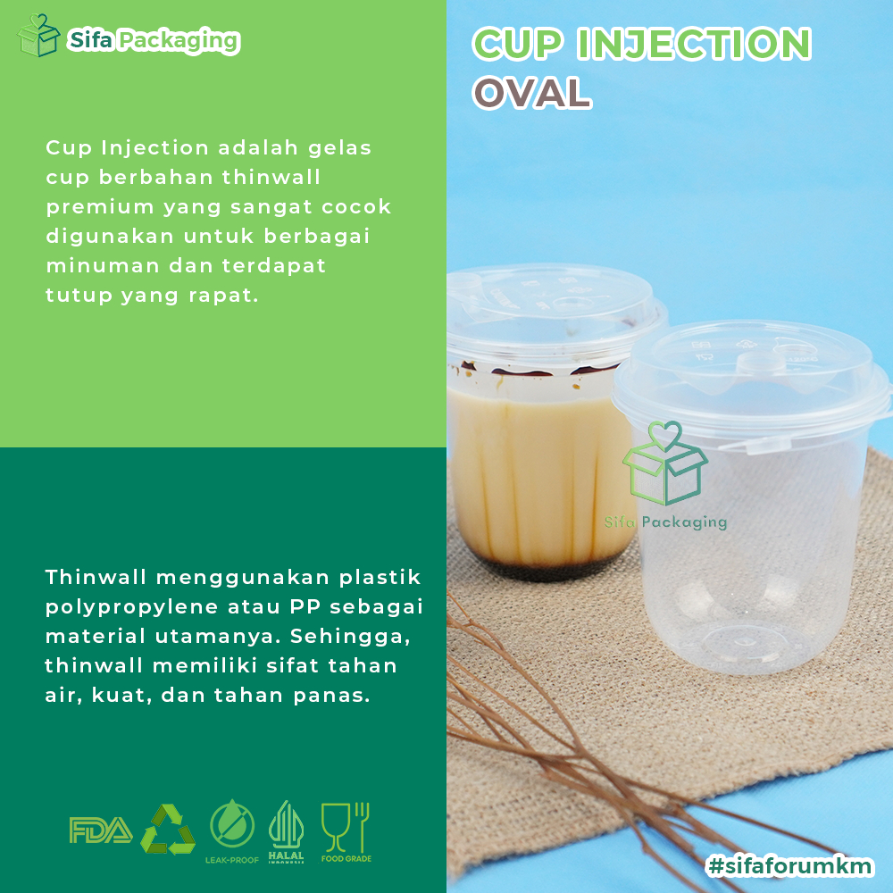 Thinwall Cup Injection Transparan + Tutup Gelas Plastik Bening Injection Cup Kekinian Gelas Inject Oval Tebal Murah Ukur